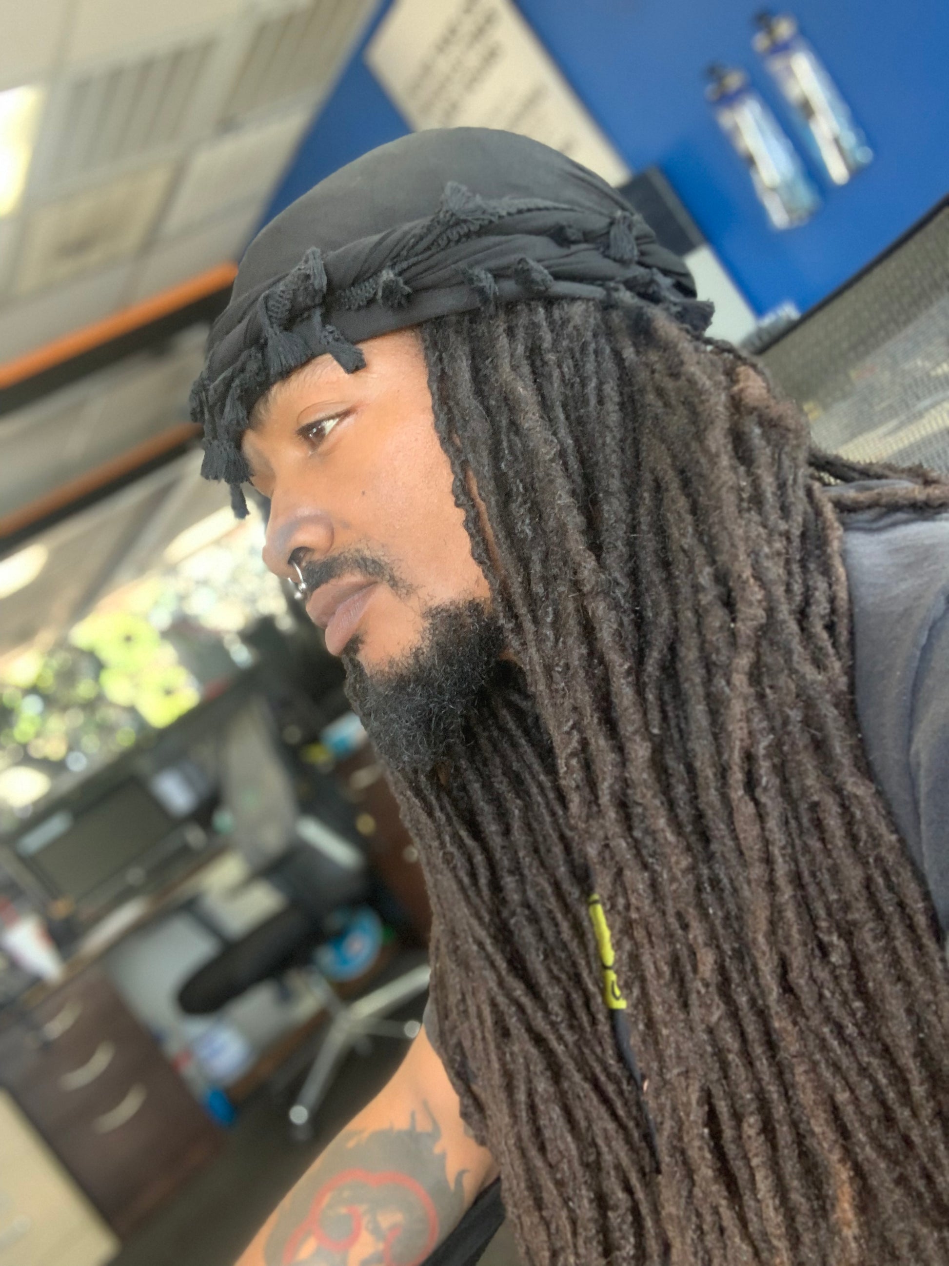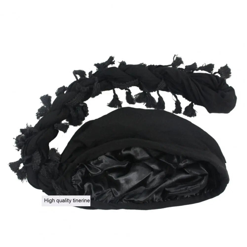 Black Halo Burr Turban Durag for Men: Satin Lined